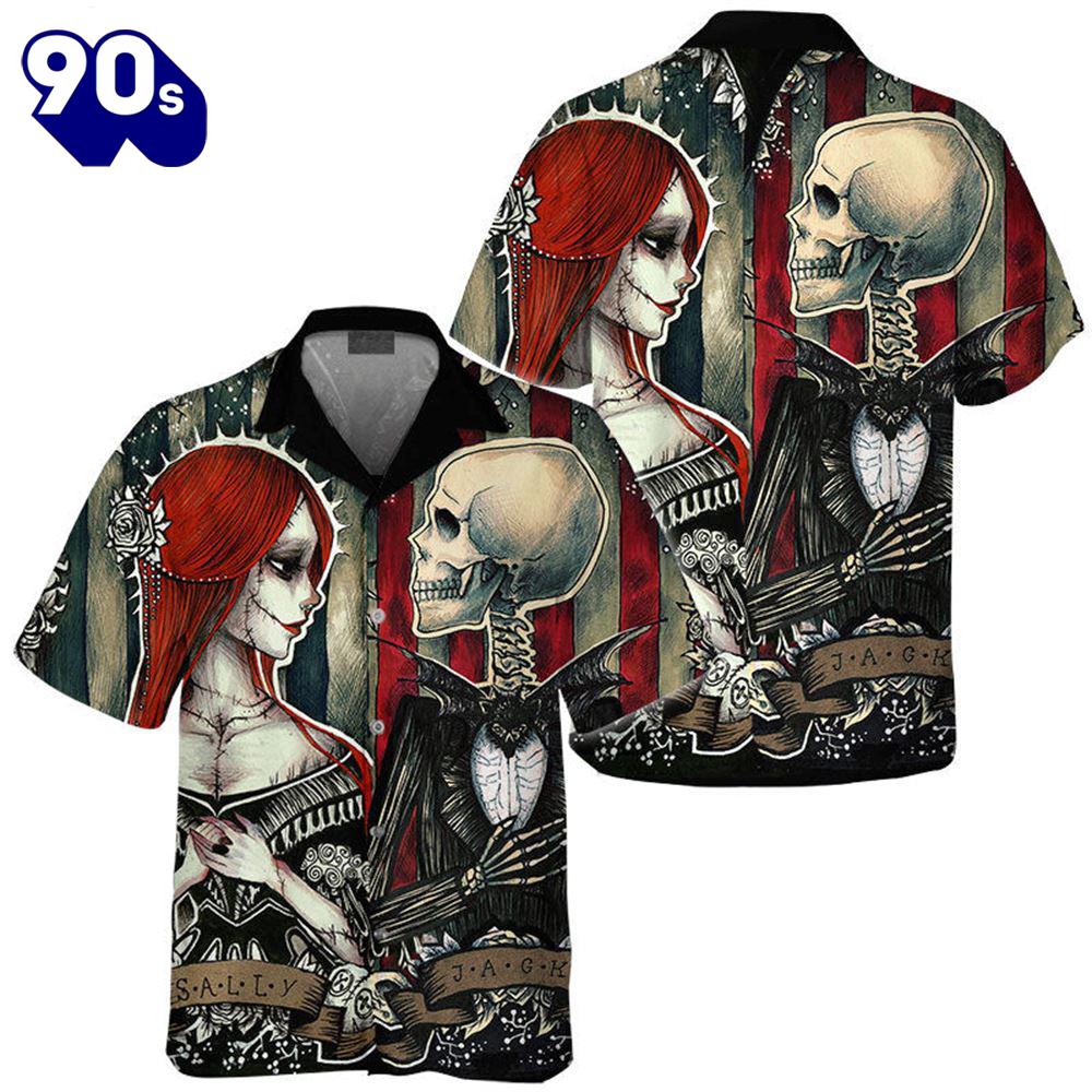 Product details: Jack Skellington And Sally Skull Hawaiian Shirt Gift Xmas