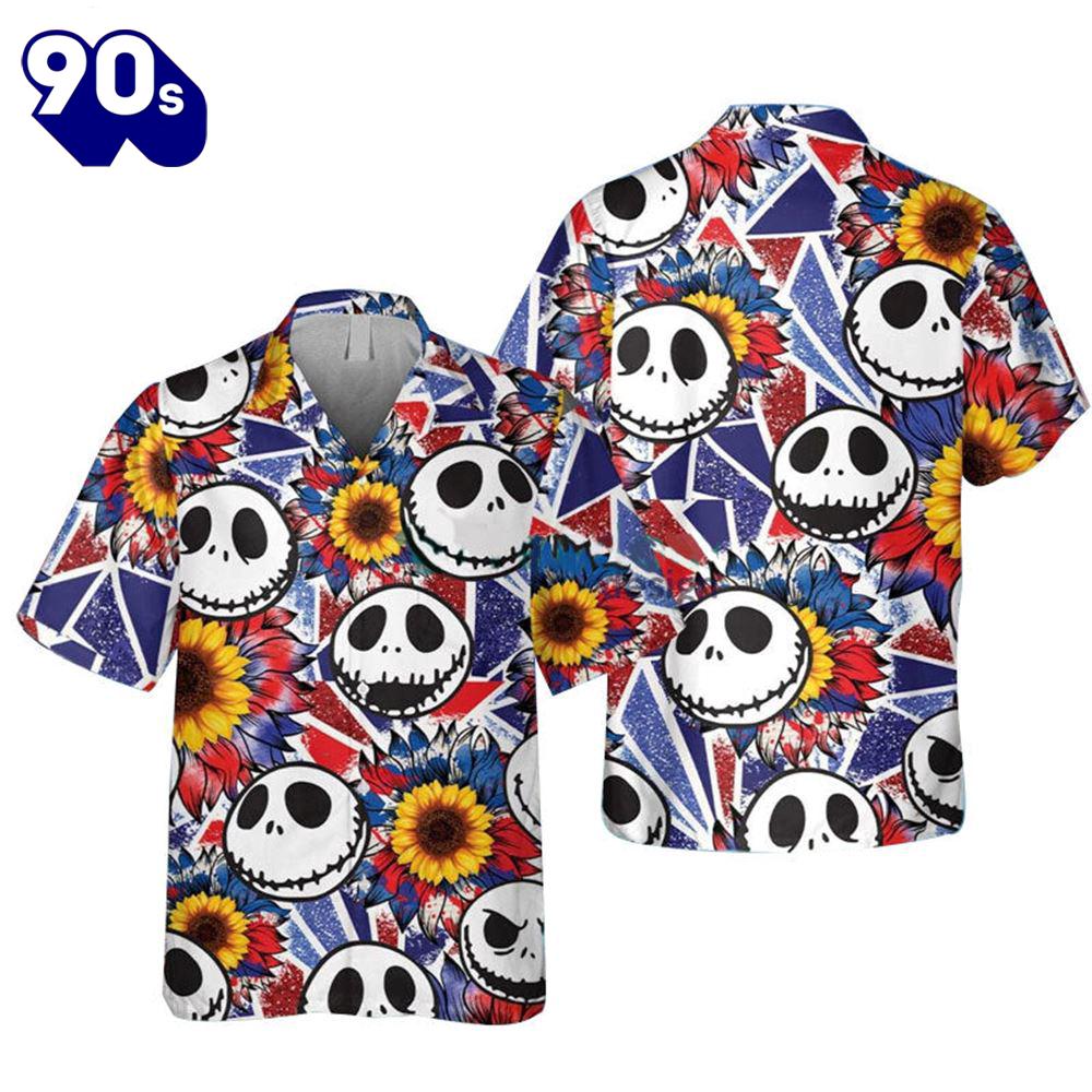 Jack Skellington Sunflower American Flag Hawaiian Shirt Gift Xmas