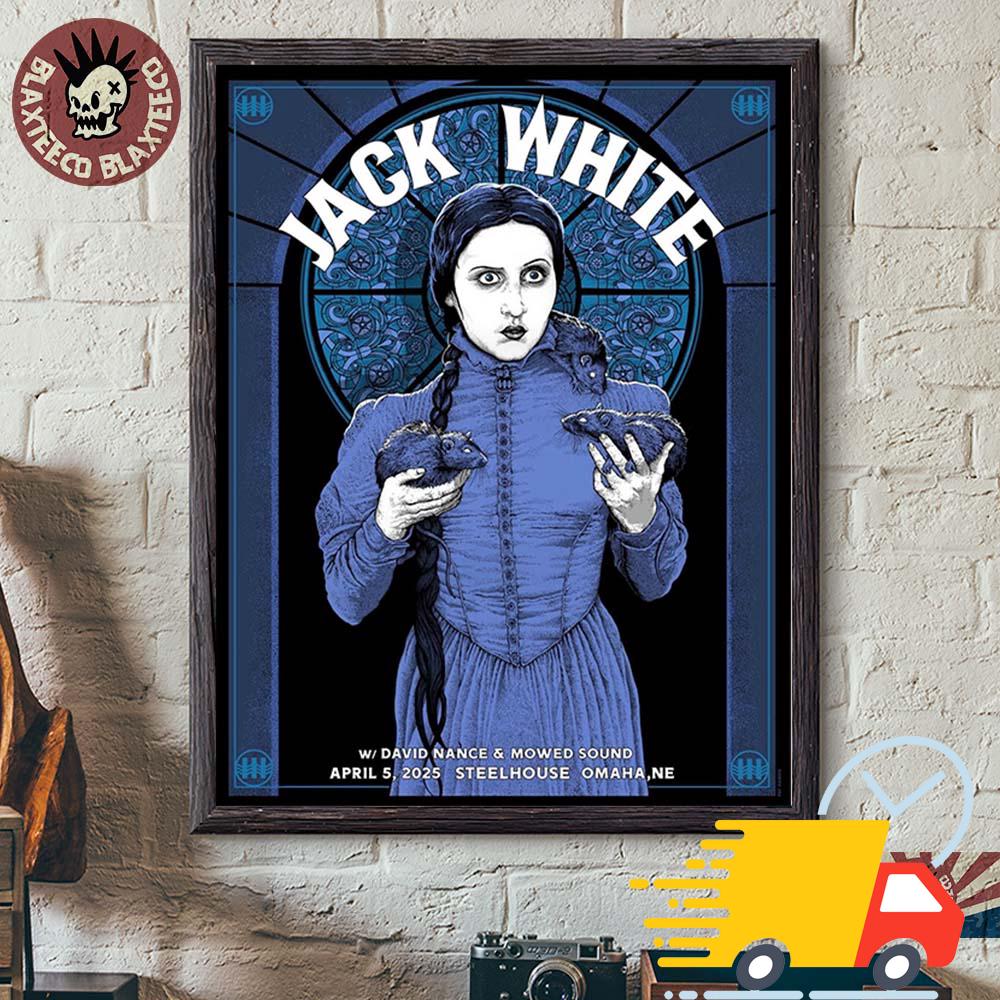 Product details: Jack White Omaha Nebraska 2025 Poster At Steelhouse On April 5 2025 With David Nance And Mowed Sound Rough On Rats Inspiration Canvas