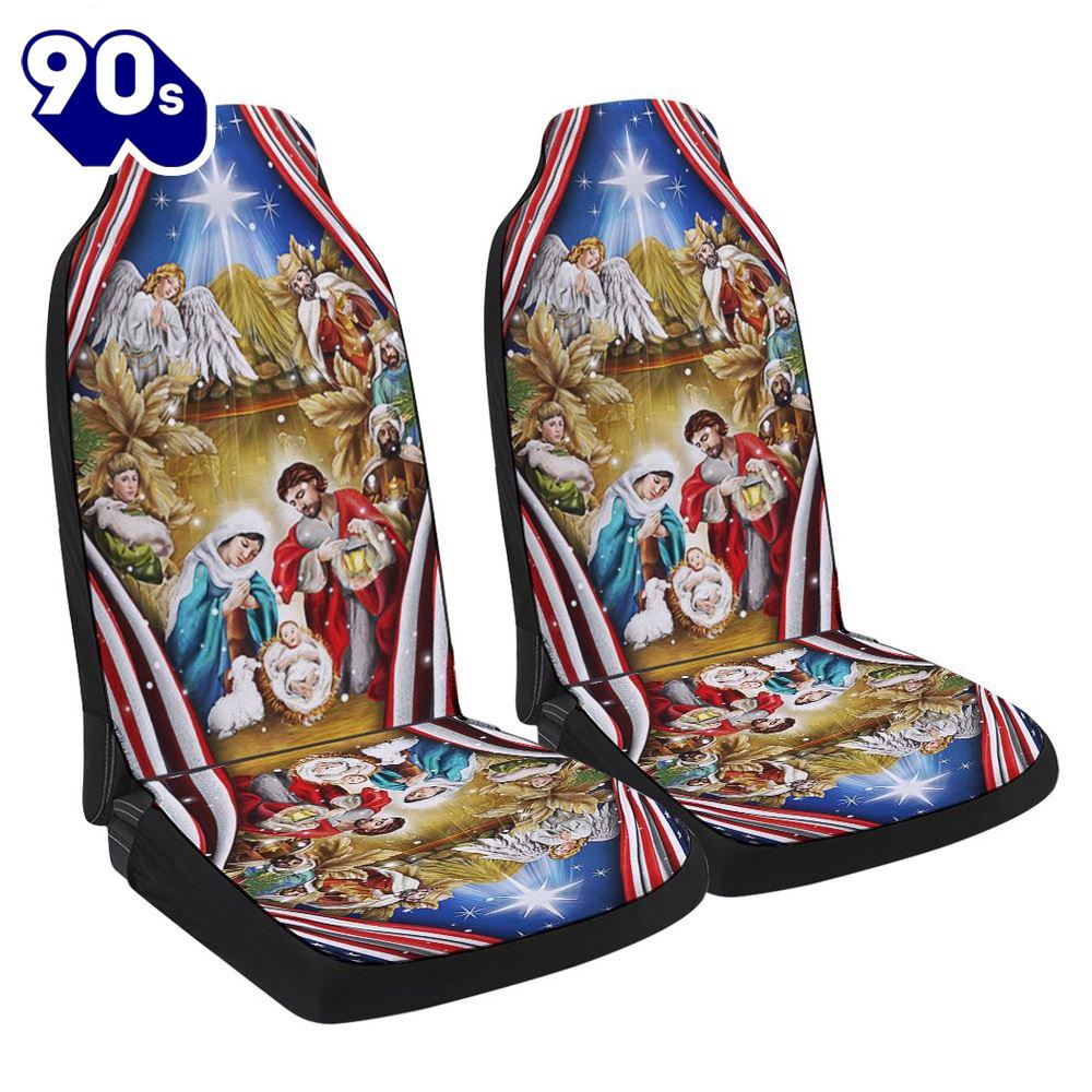 Photos Of Jesus Family Nativity Of Jesus Christmas American Flag Seat Cover Cars Gift For Christmas