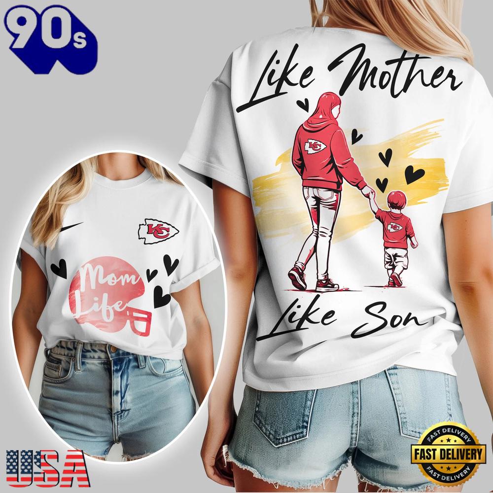 Kansas City Chiefs Premium NFL Like Mother Like Son 3D Shirt The 3D Shirt is a fashion statement that goes beyond the ordinary. Using advanced printing technology, it brings designs to life with depth and vividness. Crafted from high-quality materials, it offers comfort and durability. The three-dimensional graphics create a captivating effect that’s perfect for casual wear or making a bold statement. Whether you’re expressing your fandom or showcasing your unique taste, the 3D Shirt is a wearable work of art that sets you apart from the crowd.