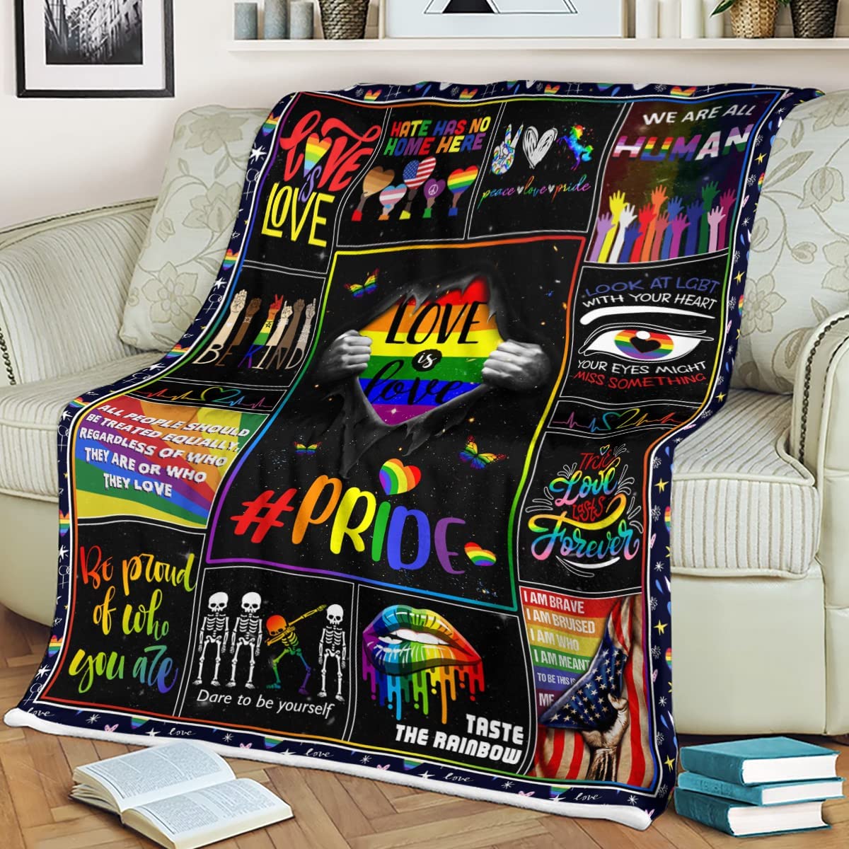 Lgbt Throw Blanket For Lesbian Bisexual Transgender Gay Couple Rainbow Love Is Love Gay Pride Blanket Indulge in ultimate comfort with our exquisite Blankets! Crafted from the finest materials, these blankets offer a luxurious feel and unparalleled coziness. Designed to keep you snug and warm during chilly nights or lazy afternoons, they come in various sizes, ensuring there’s a perfect fit for every need. With a wide range of colors, textures, and patterns, these blankets complement any decor, from classic to modern, effortlessly adding a touch of elegance to your space. The premium-quality fabric guarantees durability, softness, and easy maintenance, making them a must-have for your home. Wrap yourself in sheer comfort and style with our plush blankets, creating a haven of relaxation and warmth whenever you need it.