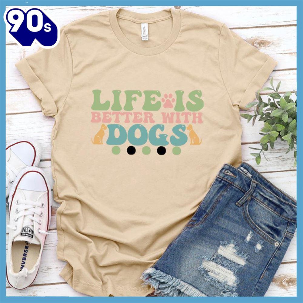 Life Is Better With Dogs Colored Print T-Shirt Gift Mom This versatile T-shirt is perfect for everyone, combining style and comfort. Made from soft, high-quality fabric, it features a classic fit that suits any body type. Ideal for casual wear or layering, this T-shirt comes in a variety of colors to match any wardrobe. Its durable construction ensures long-lasting wear, making it a staple piece for both men and women