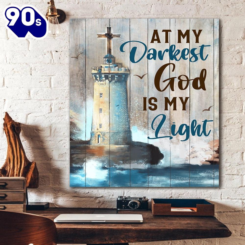 Product details: Light House At My Darkest God Is My Light Canvas Canvas Decor Ideas Gift For Christmas