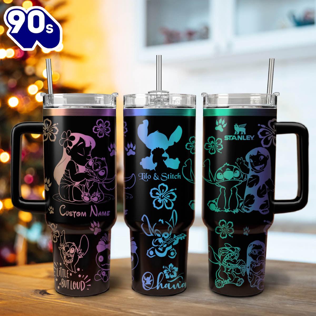 Lilo And Stitch Cartoon Custom Stanley Quencher 40oz Stainless Steel Tumbler With Handle The Stanley Tumbler 40oz is a versatile and durable companion designed to keep your beverages at the perfect temperature, whether you’re on the go or enjoying a day outdoors. Crafted from high-grade stainless steel, this tumbler boasts exceptional insulation capabilities, maintaining your drinks hot or cold for hours. Its generous 40-ounce capacity is perfect for long trips or sharing with friends. The design features a spill-resistant lid and a comfortable handle, making it easy to carry and use. With its rugged construction and sleek appearance, the Stanley Tumbler 40oz is the ideal choice for those who demand both functionality and style in their drinkware.
