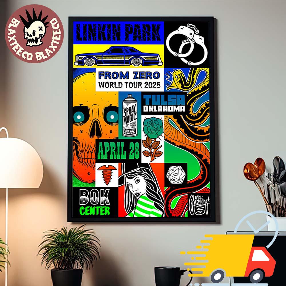 Product details: Linkin Park From Zero World Tour 2025 Tulsa Oklahoma Concert Poster On April 28 2025 At Bok Center Canvas
