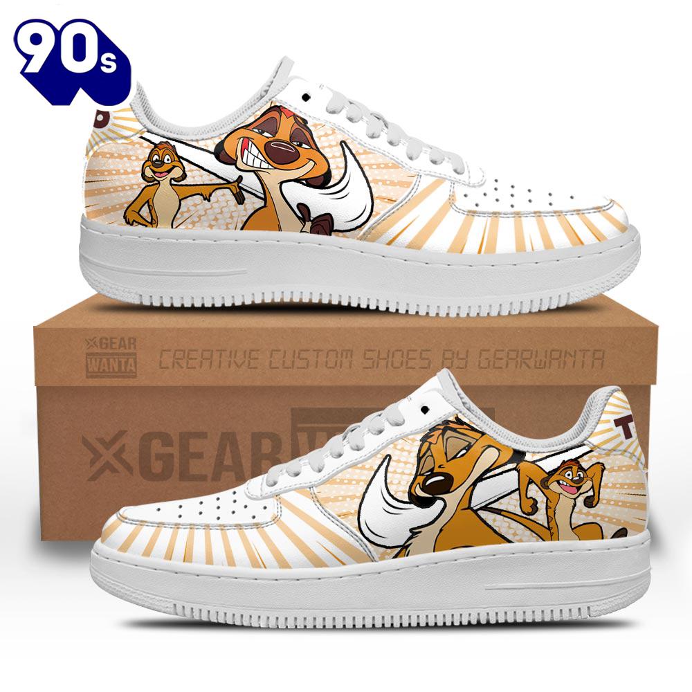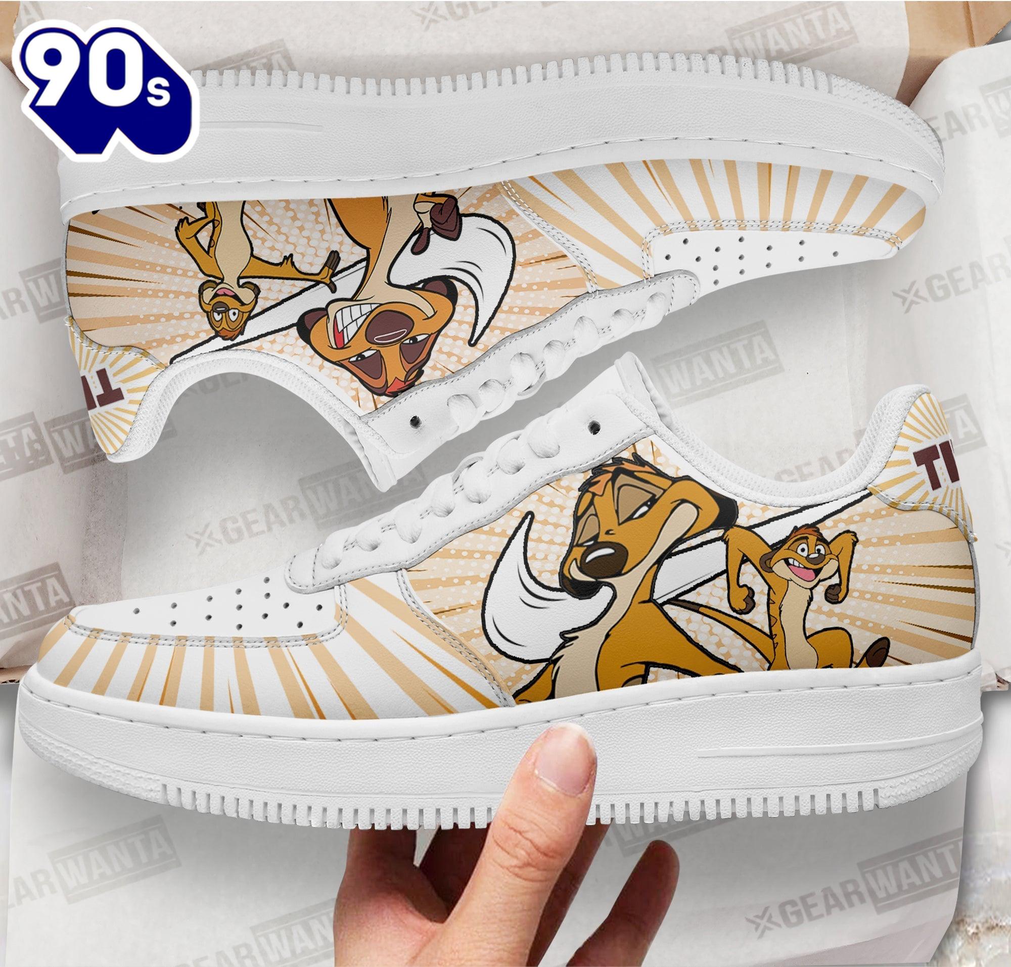 Lion King Timo Air Sneakers Custom Air Force 1 shoes are iconic sneakers that blend basketball heritage with streetwear style. Named after the aircraft that carries the President of the United States, these shoes feature a classic silhouette with a padded collar for comfort and a durable leather upper. The Air cushioning technology in the sole provides exceptional support, making them not only stylish but also practical for everyday wear. Over the years, Air Force 1s have transcended their athletic origins, becoming a cultural symbol in music, fashion, and art, often customized in various colors and designs to reflect individual style. Their timeless appeal and versatility ensure they remain a staple in sneaker culture.