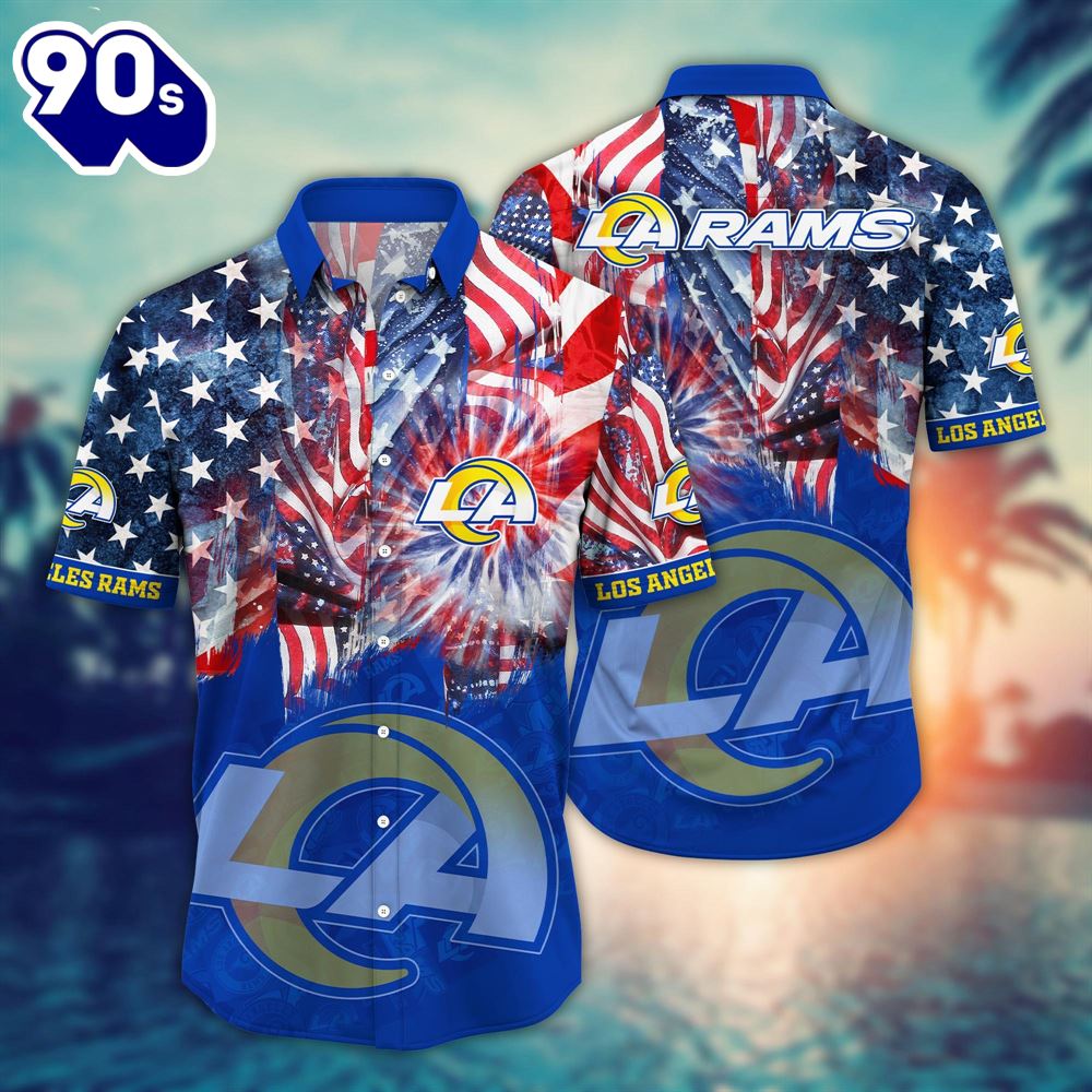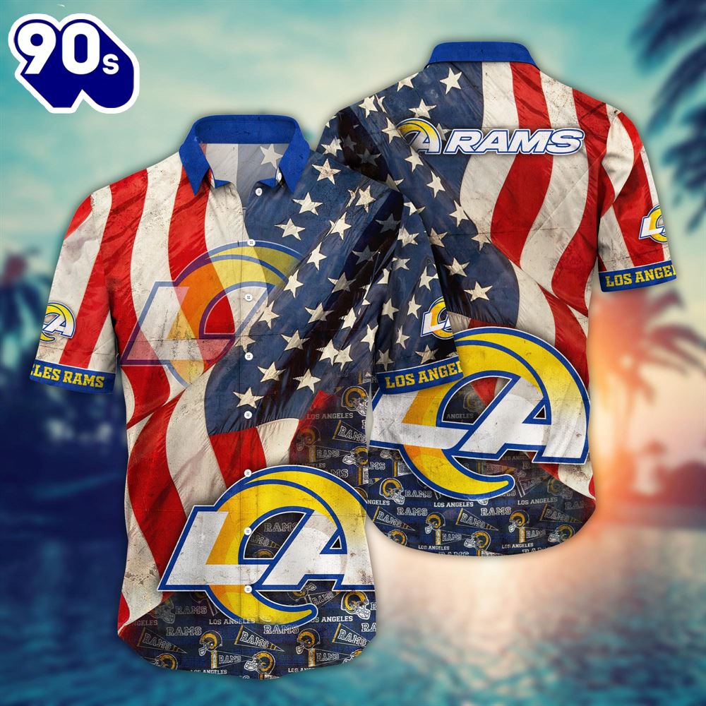 Los Angeles Rams NFL US Flaq 4th Of July Hawaiian Shirt For Fans Trending Summer Football Shirts The Hawaiian Shirt is an iconic symbol of laid-back, tropical style. Crafted from lightweight, breathable fabrics, it offers a comfortable and relaxed fit, perfect for warm weather escapades. Its vibrant, exotic patterns evoke the spirit of the Hawaiian islands, radiating a sense of fun and adventure. With its button-up design and collared finish, it strikes the perfect balance between casual and smart-casual attire. Whether you’re strolling along the beach or attending a summer soirée, the Hawaiian Shirt exudes a carefree charm that’s synonymous with leisure and relaxation. Embrace the spirit of aloha and infuse a touch of paradise into your wardrobe with this classic and timeless piece of attire.