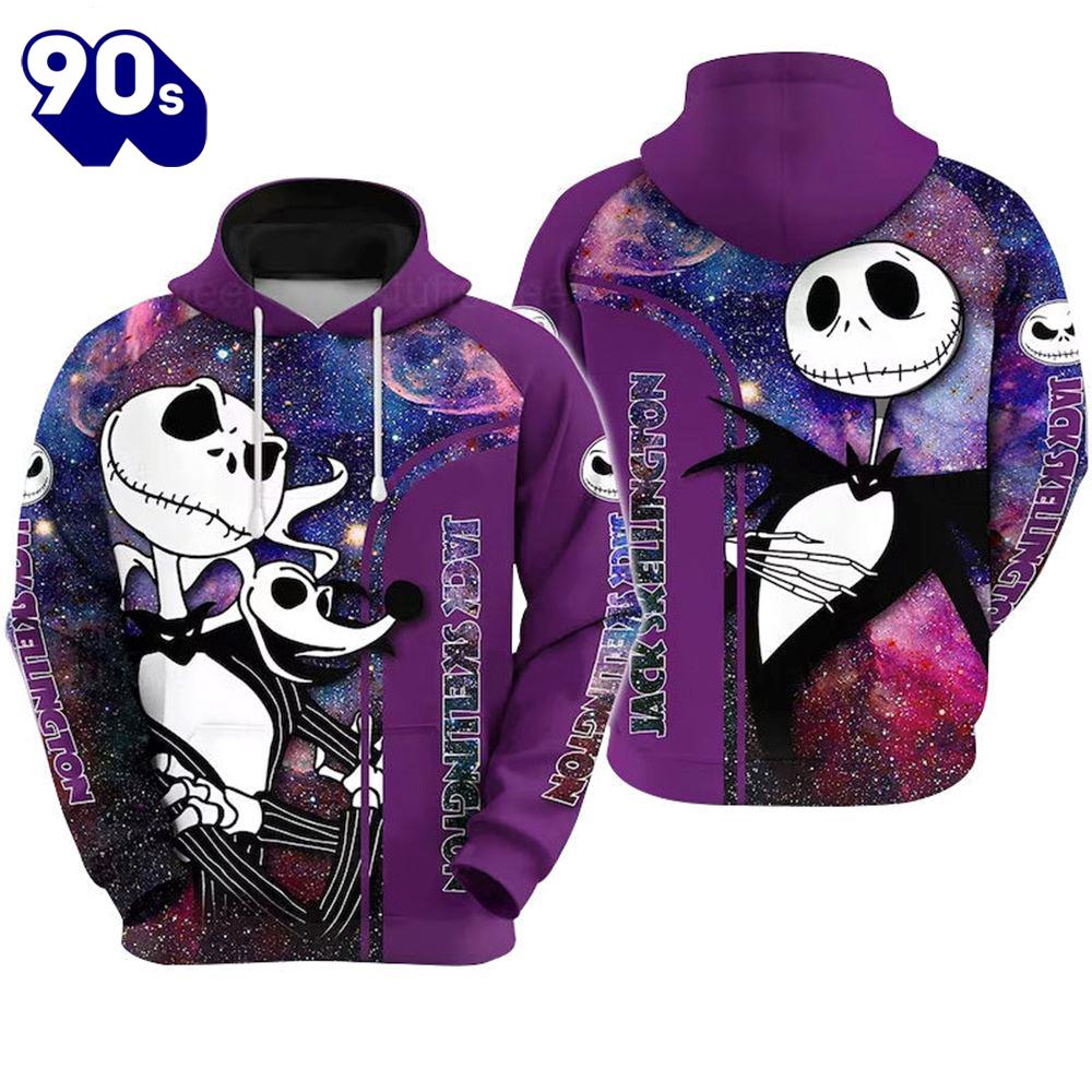 Merry Christmas Jack Skellington And Zero Purple Galaxy Hoodie The 3D Shirt is a fashion statement that goes beyond the ordinary. Using advanced printing technology, it brings designs to life with depth and vividness. Crafted from high-quality materials, it offers comfort and durability. The three-dimensional graphics create a captivating effect that’s perfect for casual wear or making a bold statement. Whether you’re expressing your fandom or showcasing your unique taste, the 3D Shirt is a wearable work of art that sets you apart from the crowd.