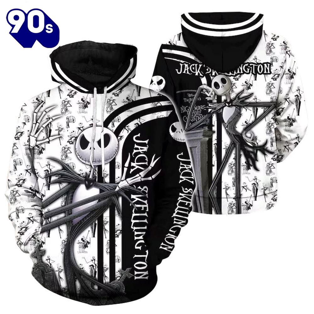 Merry Christmas Jack Skellington Black White Hoodie & Zip Hoodie The 3D Shirt is a fashion statement that goes beyond the ordinary. Using advanced printing technology, it brings designs to life with depth and vividness. Crafted from high-quality materials, it offers comfort and durability. The three-dimensional graphics create a captivating effect that’s perfect for casual wear or making a bold statement. Whether you’re expressing your fandom or showcasing your unique taste, the 3D Shirt is a wearable work of art that sets you apart from the crowd.