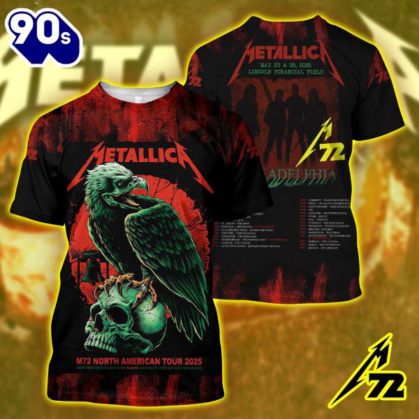 Metallica M72 Tour 2025 3D All Over Print Shirt – Pop-Up Exclusive at Lincoln Financial Field, Philadelphia The 3D Shirt is a fashion statement that goes beyond the ordinary. Using advanced printing technology, it brings designs to life with depth and vividness. Crafted from high-quality materials, it offers comfort and durability. The three-dimensional graphics create a captivating effect that’s perfect for casual wear or making a bold statement. Whether you’re expressing your fandom or showcasing your unique taste, the 3D Shirt is a wearable work of art that sets you apart from the crowd.