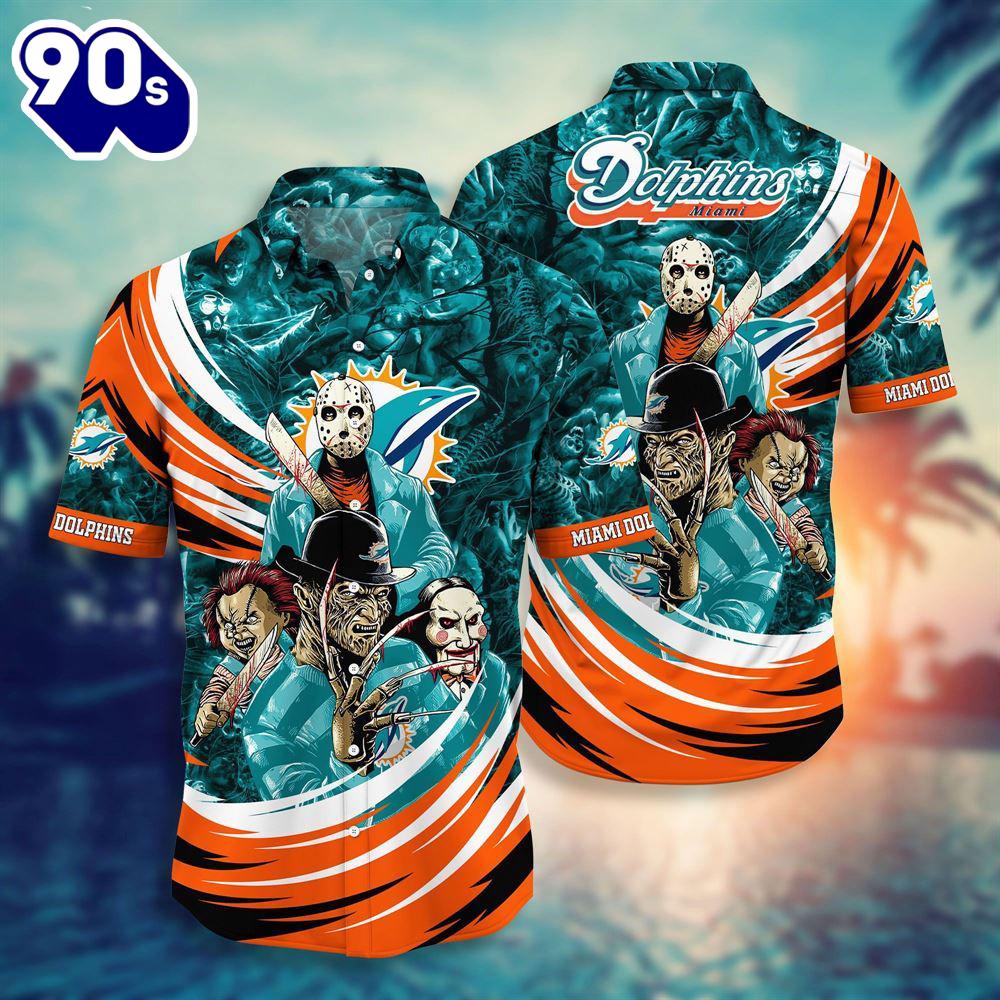 Photos Of Miami Dolphins NFL Halloween Horror Movies Hawaiian Shirts