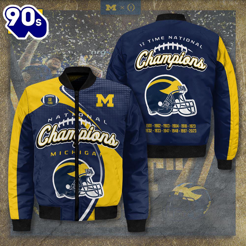 Michigan Wolverines Football 3D Bomber Jacket Gift Christmas For Fans