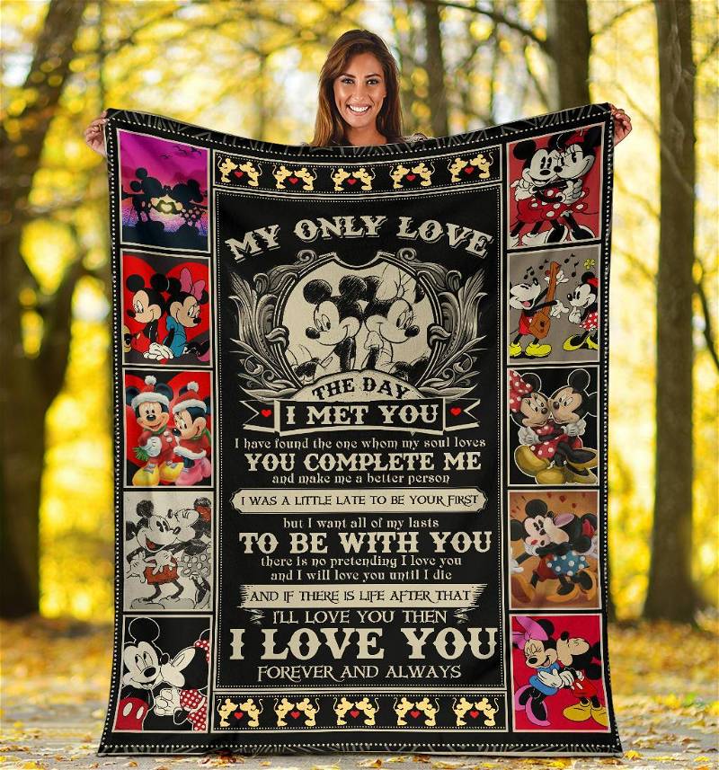 Mickey And Minnie My Only Love The Day I Met You Sherpa Fleece Blanket Gifts For Family, For Couple Indulge in ultimate comfort with our exquisite Blankets! Crafted from the finest materials, these blankets offer a luxurious feel and unparalleled coziness. Designed to keep you snug and warm during chilly nights or lazy afternoons, they come in various sizes, ensuring there’s a perfect fit for every need. With a wide range of colors, textures, and patterns, these blankets complement any decor, from classic to modern, effortlessly adding a touch of elegance to your space. The premium-quality fabric guarantees durability, softness, and easy maintenance, making them a must-have for your home. Wrap yourself in sheer comfort and style with our plush blankets, creating a haven of relaxation and warmth whenever you need it.