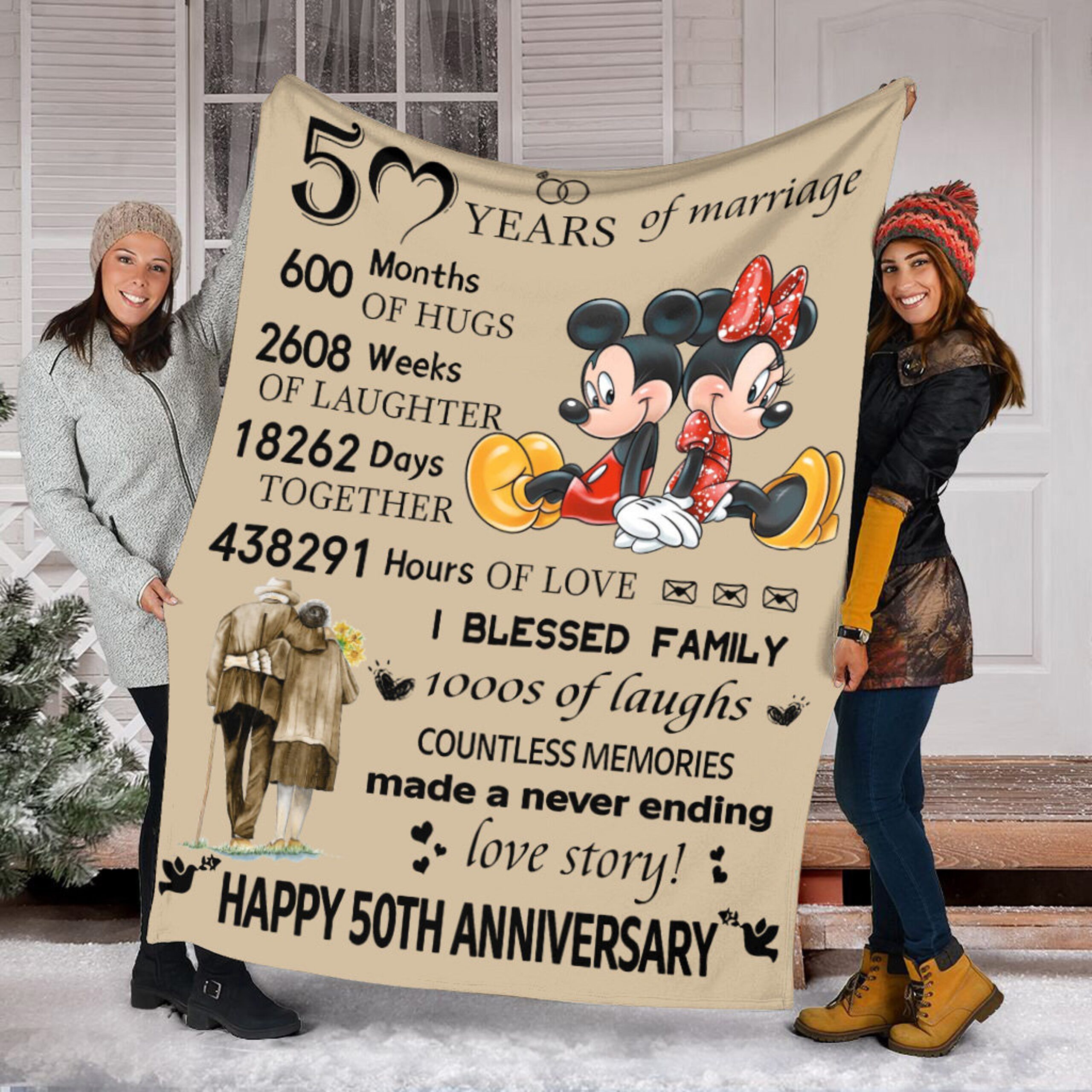 Mickey And Minnie Quilt Blanket Happy 50th Anniversary Gift Ideal Couple Gift Indulge in ultimate comfort with our exquisite Blankets! Crafted from the finest materials, these blankets offer a luxurious feel and unparalleled coziness. Designed to keep you snug and warm during chilly nights or lazy afternoons, they come in various sizes, ensuring there’s a perfect fit for every need. With a wide range of colors, textures, and patterns, these blankets complement any decor, from classic to modern, effortlessly adding a touch of elegance to your space. The premium-quality fabric guarantees durability, softness, and easy maintenance, making them a must-have for your home. Wrap yourself in sheer comfort and style with our plush blankets, creating a haven of relaxation and warmth whenever you need it.