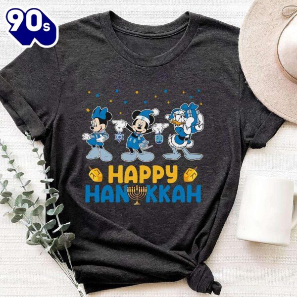 Mickey Minnie Donald Duck Happy Hanukkah T-Shirt Disney This versatile T-shirt is perfect for everyone, combining style and comfort. Made from soft, high-quality fabric, it features a classic fit that suits any body type. Ideal for casual wear or layering, this T-shirt comes in a variety of colors to match any wardrobe. Its durable construction ensures long-lasting wear, making it a staple piece for both men and women
