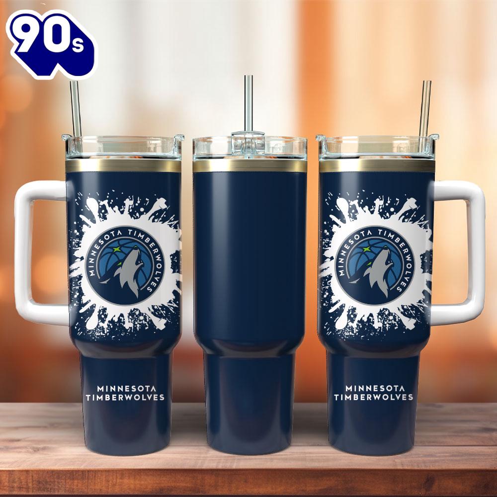 Minnesota Timberwolves Basketball Team NBA Custom Stanley Quencher 40oz Stainless Steel Tumbler With Handle