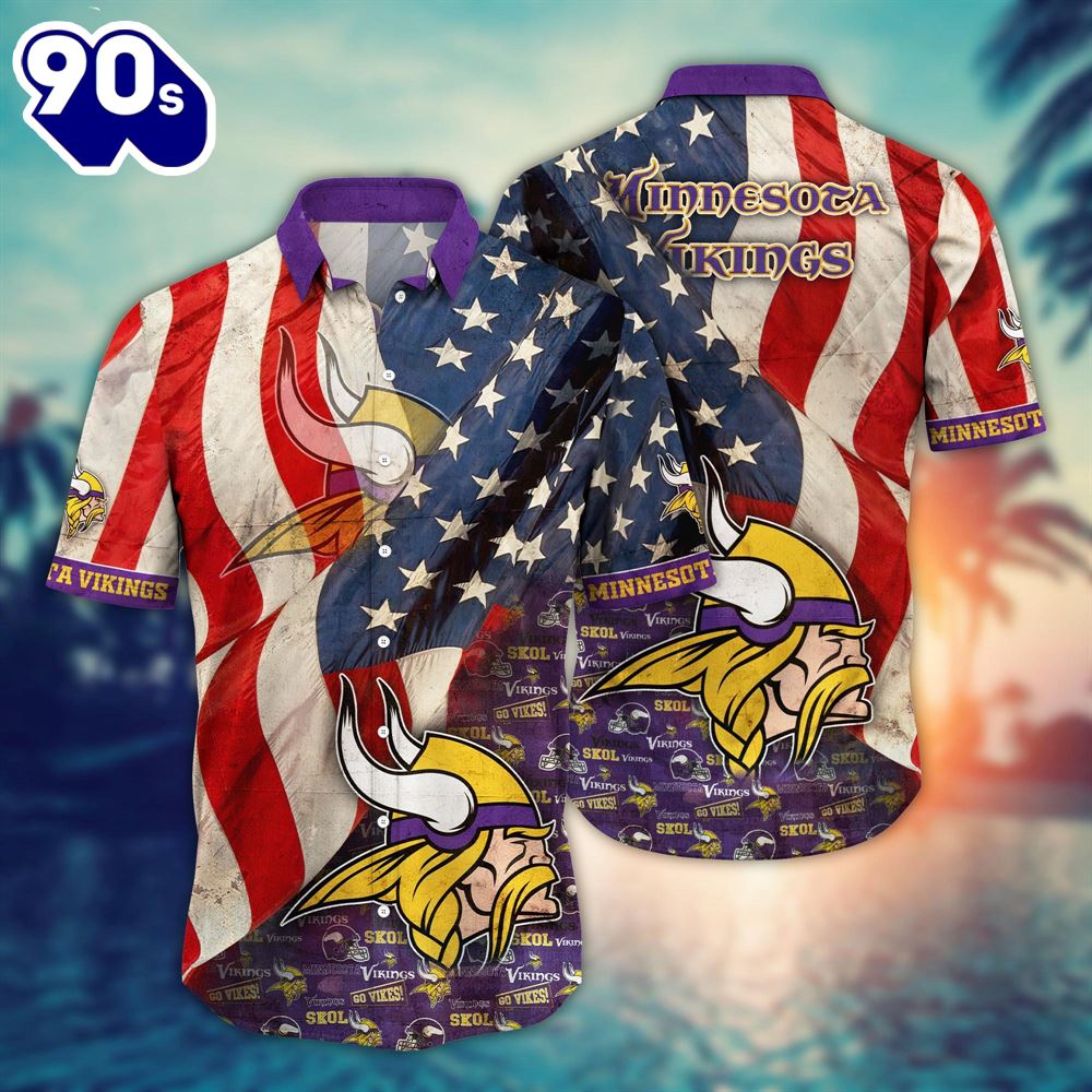 Minnesota Vikings NFL US Flaq 4th Of July Hawaiian Shirt For Fans Trending Summer Football Shirts The Hawaiian Shirt is an iconic symbol of laid-back, tropical style. Crafted from lightweight, breathable fabrics, it offers a comfortable and relaxed fit, perfect for warm weather escapades. Its vibrant, exotic patterns evoke the spirit of the Hawaiian islands, radiating a sense of fun and adventure. With its button-up design and collared finish, it strikes the perfect balance between casual and smart-casual attire. Whether you’re strolling along the beach or attending a summer soirée, the Hawaiian Shirt exudes a carefree charm that’s synonymous with leisure and relaxation. Embrace the spirit of aloha and infuse a touch of paradise into your wardrobe with this classic and timeless piece of attire.