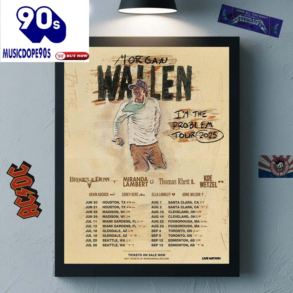 Product details: Morgan Wallen I’m The Problem Tour 2025 Tour Dates Canvas