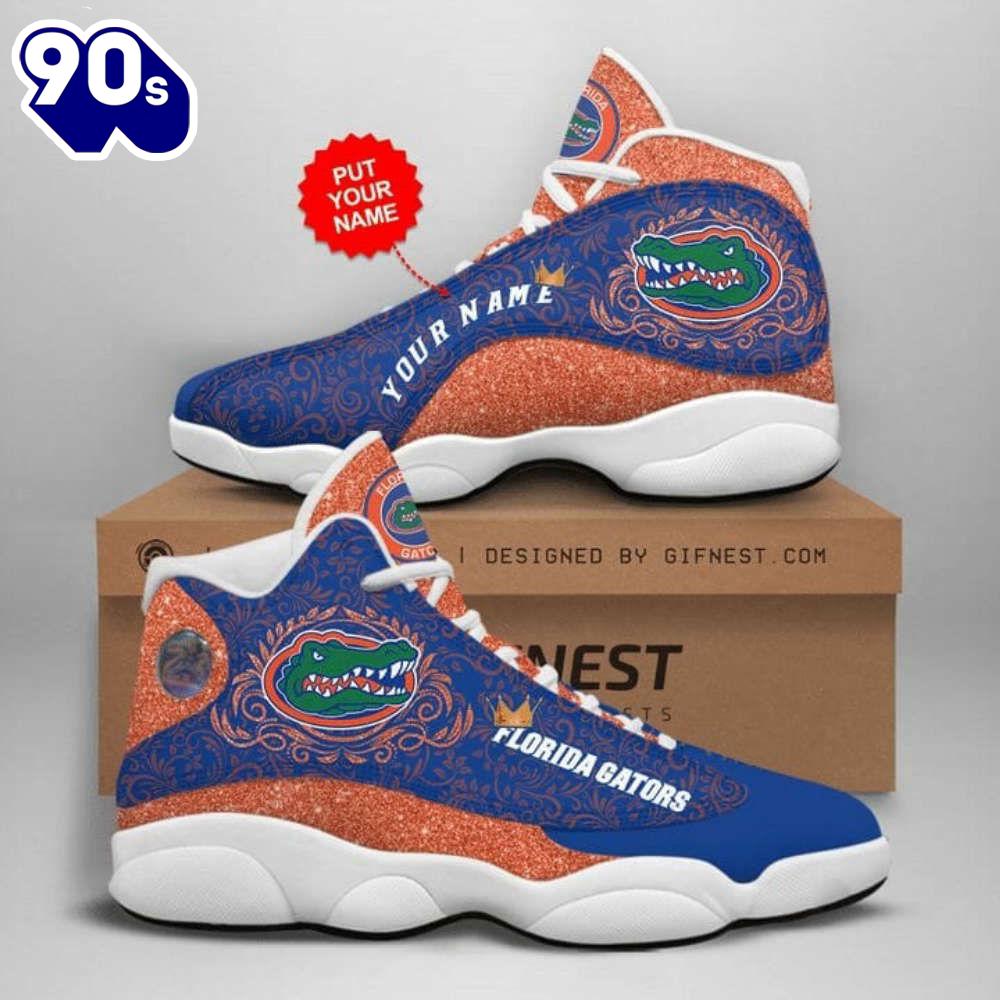 Product details: NCAA Florida Gators Custom Name Blue Orange Air Jordan 13 Shoes Gift Xmas