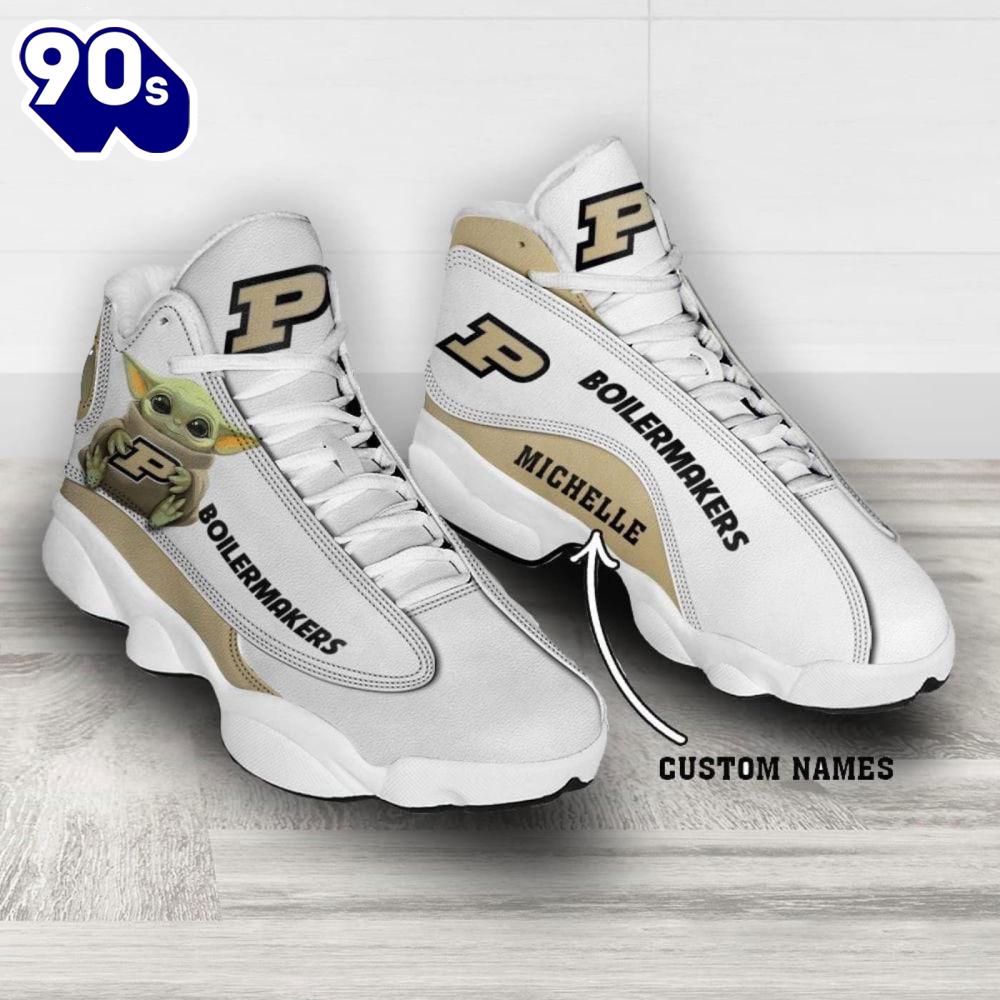 Product details: NCAA Purdue Boilermakers Custom Name Baby Yoda Air Jordan 13 Sneakers For Men Women Gift Xmas