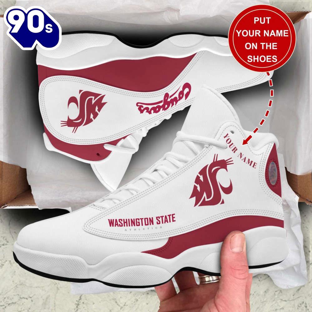 Product details: NCAA Washington State Cougars Custom Name White Red Air Jordan 13 Shoes Gift Xmas