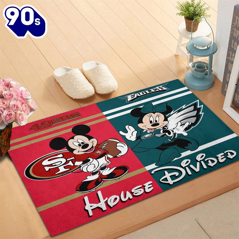 NFL Football San Francisco 49ers vs Philadelphia Eagles Mickey And Minnie Teams NFL House Divided Doormat