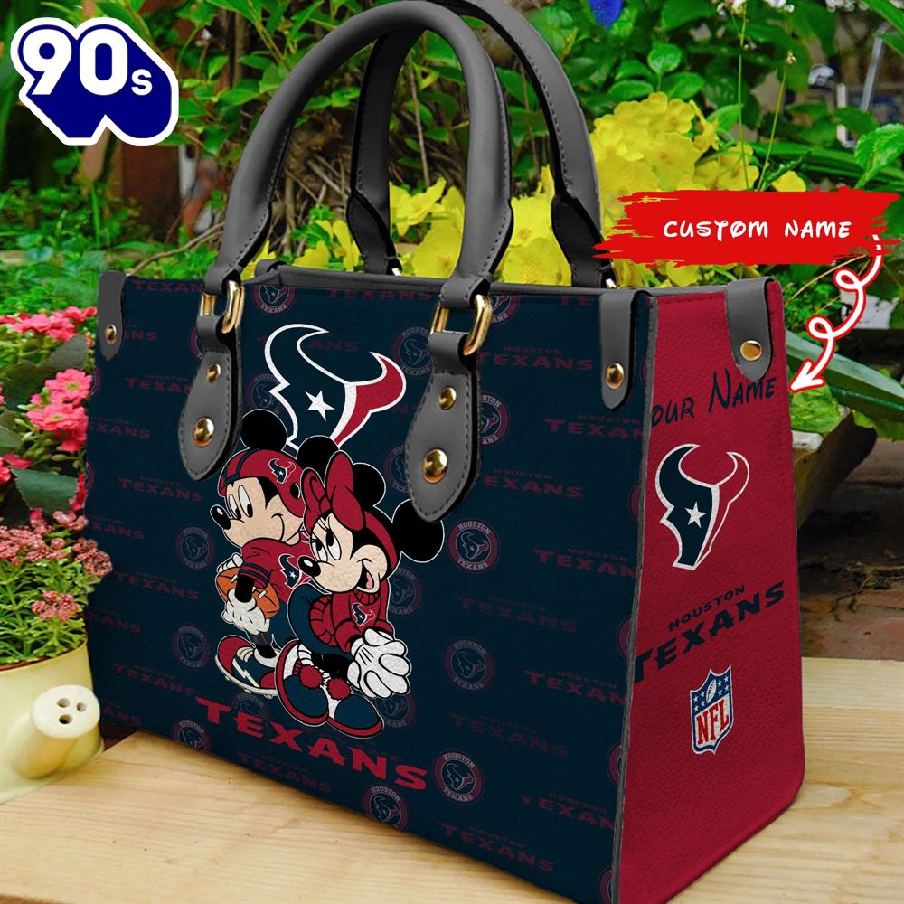 NFL Houston Texans Mickey And Minnie Women Leather Hand Bag