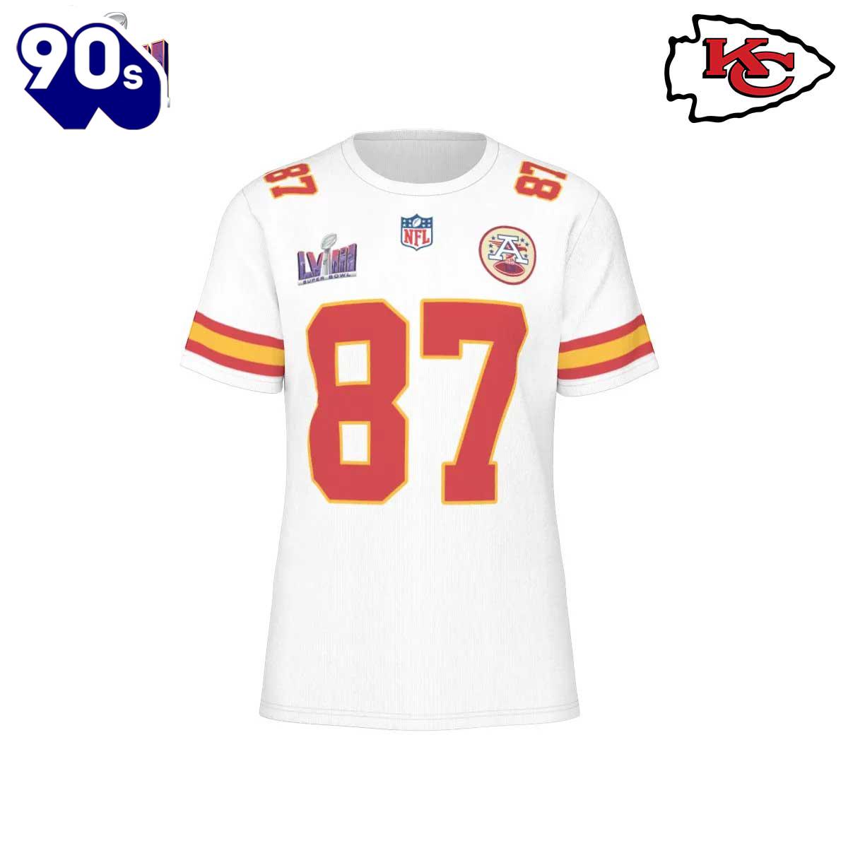 NFL Kansas City Chiefs Travis Kelce 87 Super Bowl VIII White Road Game Jersey T-Shirt The 3D Shirt is a fashion statement that goes beyond the ordinary. Using advanced printing technology, it brings designs to life with depth and vividness. Crafted from high-quality materials, it offers comfort and durability. The three-dimensional graphics create a captivating effect that’s perfect for casual wear or making a bold statement. Whether you’re expressing your fandom or showcasing your unique taste, the 3D Shirt is a wearable work of art that sets you apart from the crowd.