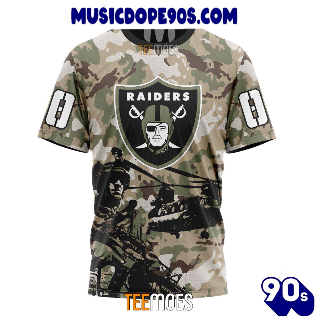 NFL Las Vegas Raiders Custom Name Number Veteran Salute To Service T-Shirt The 3D Shirt is a fashion statement that goes beyond the ordinary. Using advanced printing technology, it brings designs to life with depth and vividness. Crafted from high-quality materials, it offers comfort and durability. The three-dimensional graphics create a captivating effect that’s perfect for casual wear or making a bold statement. Whether you’re expressing your fandom or showcasing your unique taste, the 3D Shirt is a wearable work of art that sets you apart from the crowd.