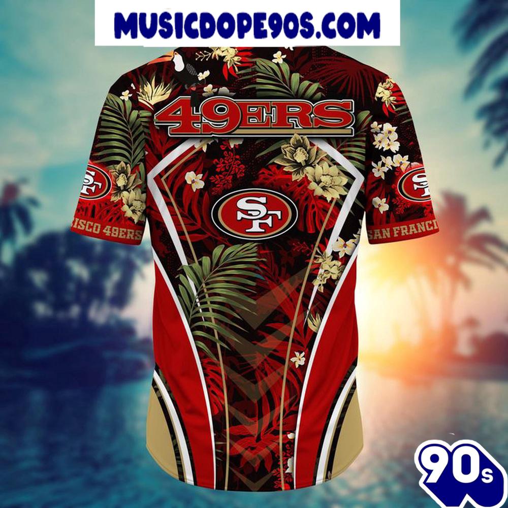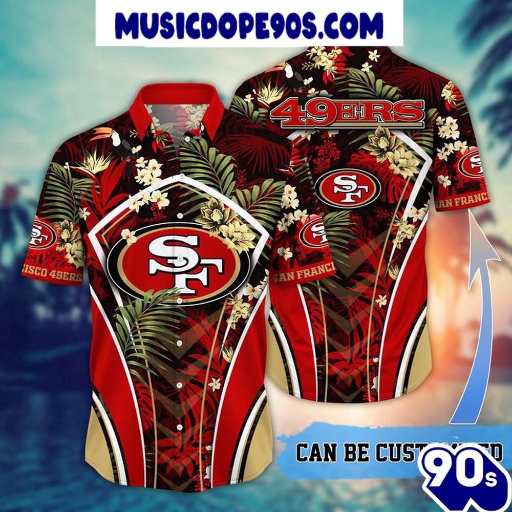 NFL San Francisco 49ers Custom Name Flower Summer Tropical Hawaiian Shirt The Hawaiian Shirt is an iconic symbol of laid-back, tropical style. Crafted from lightweight, breathable fabrics, it offers a comfortable and relaxed fit, perfect for warm weather escapades. Its vibrant, exotic patterns evoke the spirit of the Hawaiian islands, radiating a sense of fun and adventure. With its button-up design and collared finish, it strikes the perfect balance between casual and smart-casual attire. Whether you’re strolling along the beach or attending a summer soirée, the Hawaiian Shirt exudes a carefree charm that’s synonymous with leisure and relaxation. Embrace the spirit of aloha and infuse a touch of paradise into your wardrobe with this classic and timeless piece of attire.