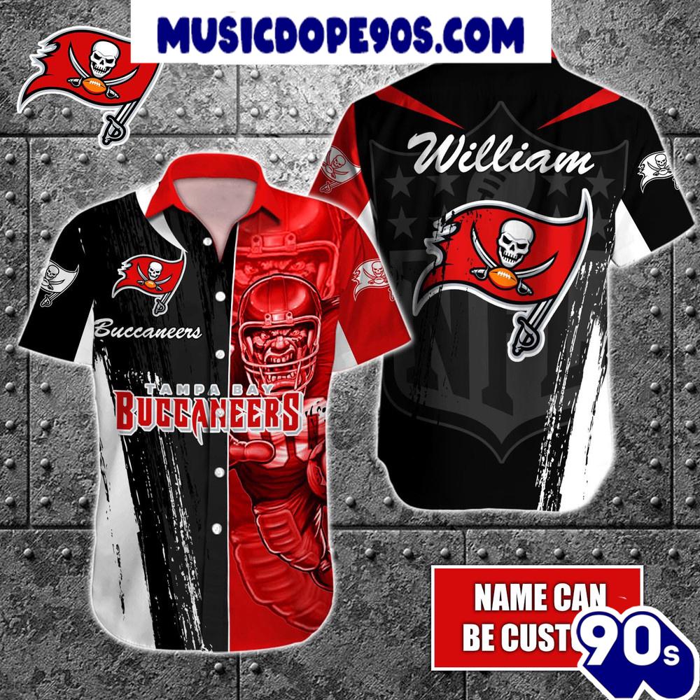 Product details: NFL Tampa Bay Buccaneers Custom Name Special Half Tone Mascot Hawaiian Shirt