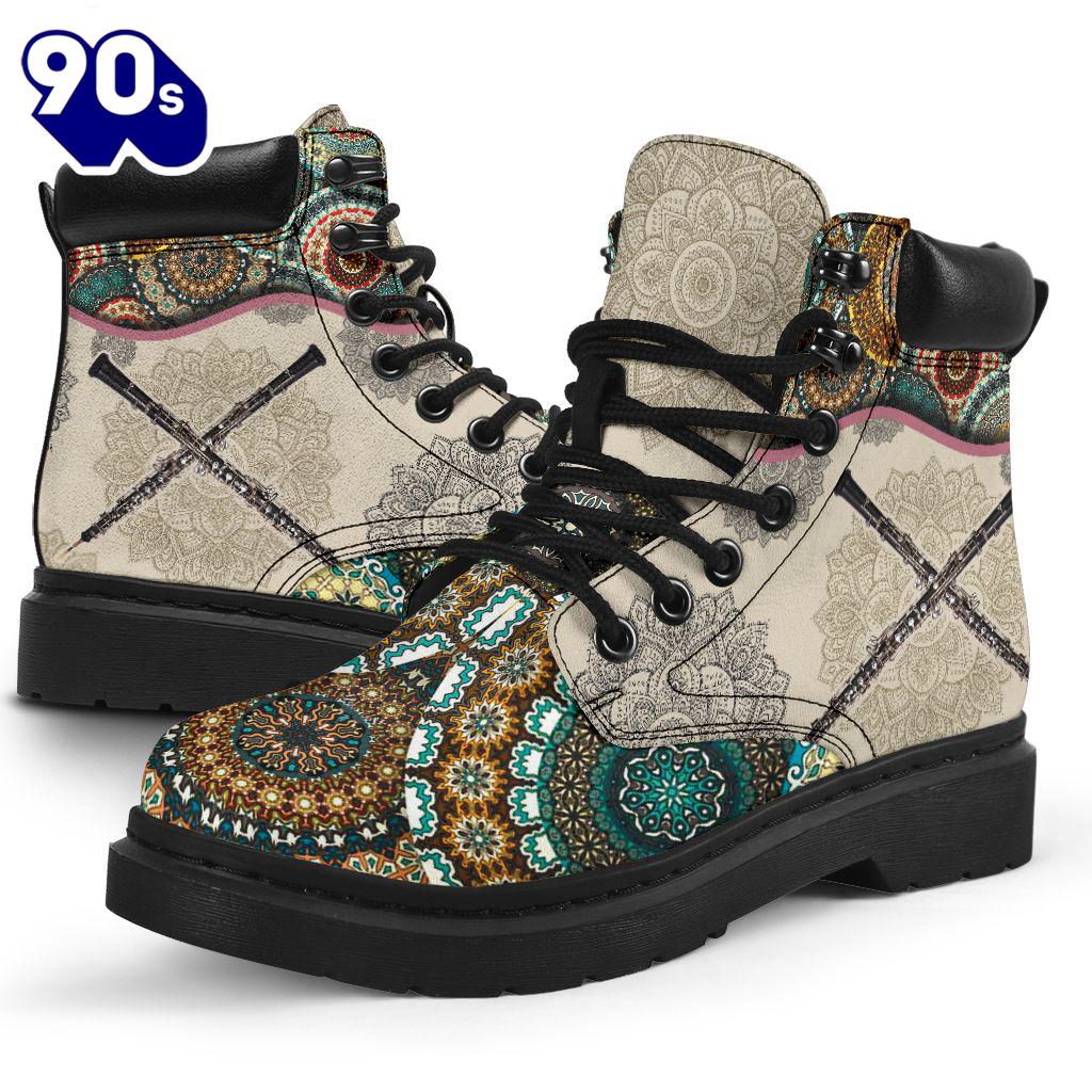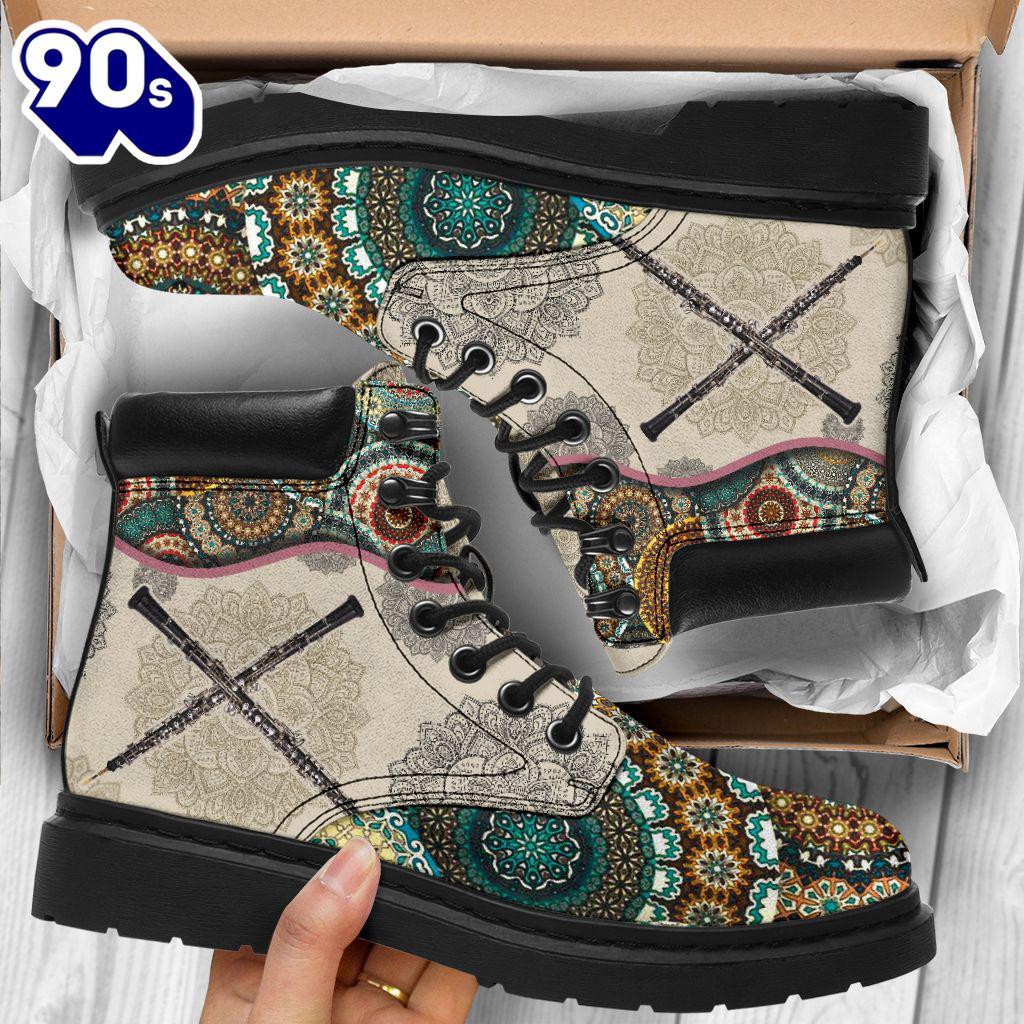 Oboe Vintage Mandala Asboot All Season Boots Gift Xmas Boots are versatile footwear designed to provide both style and functionality. Typically made from materials like leather, suede, or synthetic fabrics, they come in various heights, from ankle to knee-high. Boots can be found in numerous styles, including casual, formal, and rugged designs, making them suitable for a wide range of occasions. With features like waterproofing, insulation, and sturdy soles, they offer comfort and protection in various weather conditions. Whether paired with jeans for a casual look or dressed up with a skirt, boots are a timeless addition to any wardrobe, combining practicality with fashion.