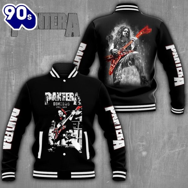 Pantera Varsity Jacket For Fans A Baseball Jacket also known as a varsity jacket or letterman jacket, is a classic piece of outerwear traditionally associated with American college and high school sports teams. It typically features a wool or cotton body with contrasting leather or synthetic sleeves, and a ribbed collar, cuffs, and hem. The jacket is often decorated with patches, letters, or logos representing a team, school, or sport. Its timeless design combines sporty and casual elements, making it popular not only among athletes but also as a fashionable streetwear item. The baseball jacket is both functional and stylish, offering warmth and a relaxed fit.