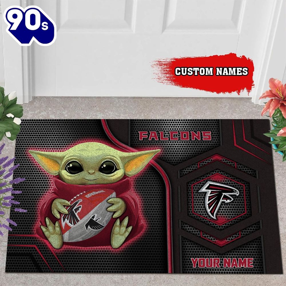 Personalized Atlanta Falcons Baby Yoda All Over Print 3D Doormats-TPH
