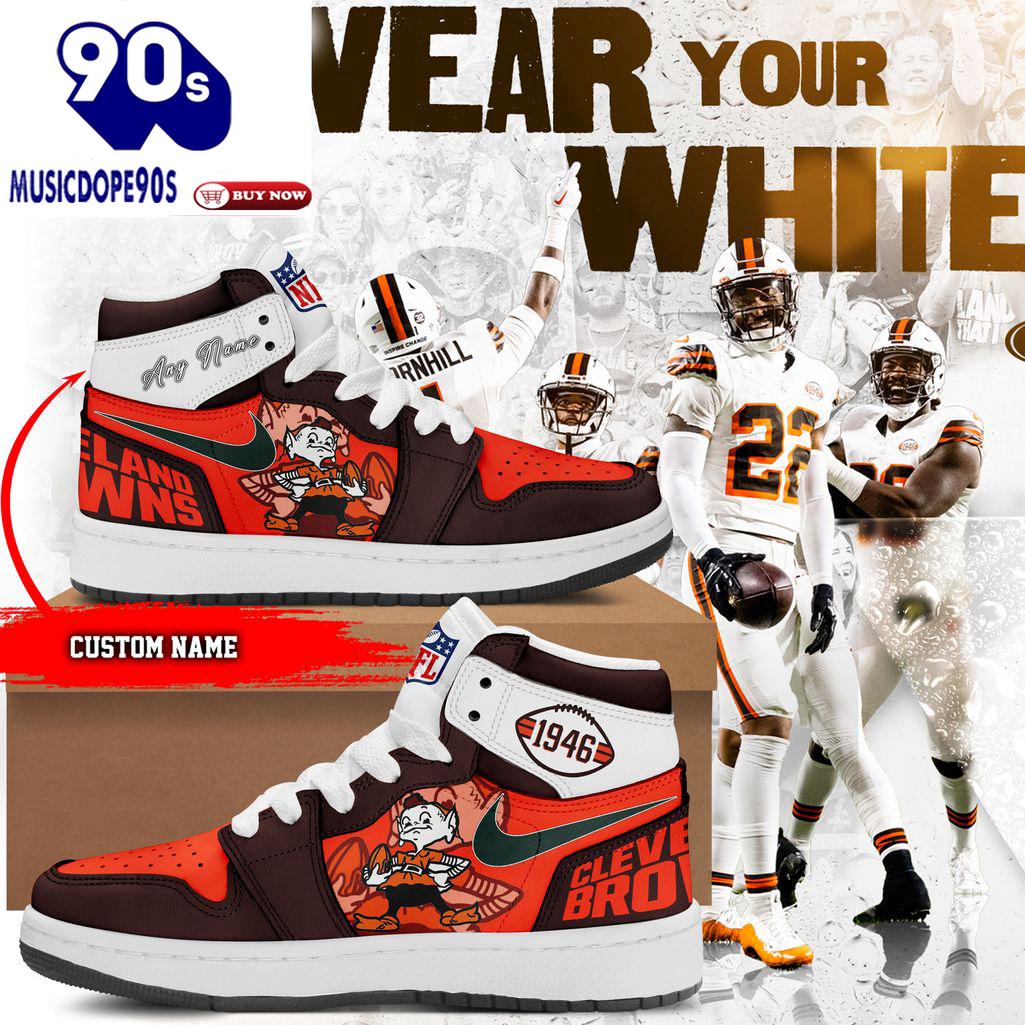 Personalized Cleveland Browns 1946 Nike Logo Orange Design Air Jordan 1 High Top