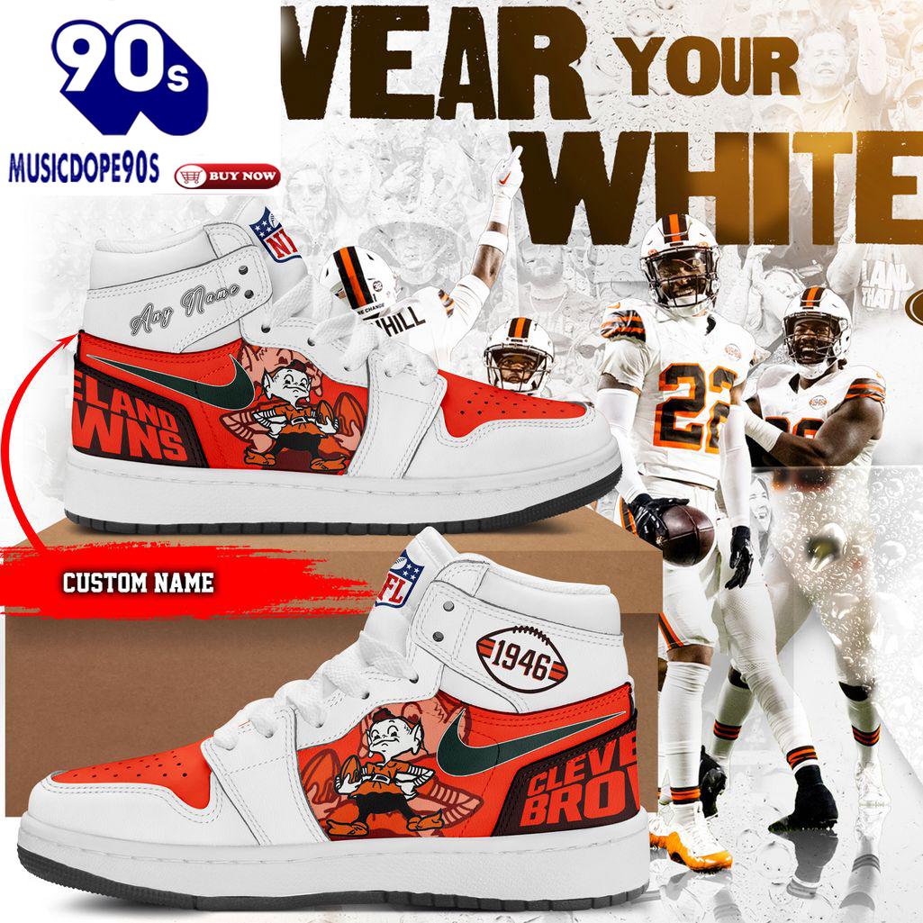 Personalized Cleveland Browns 1946 Nike Logo Orange White Design Air Jordan 1 High Top