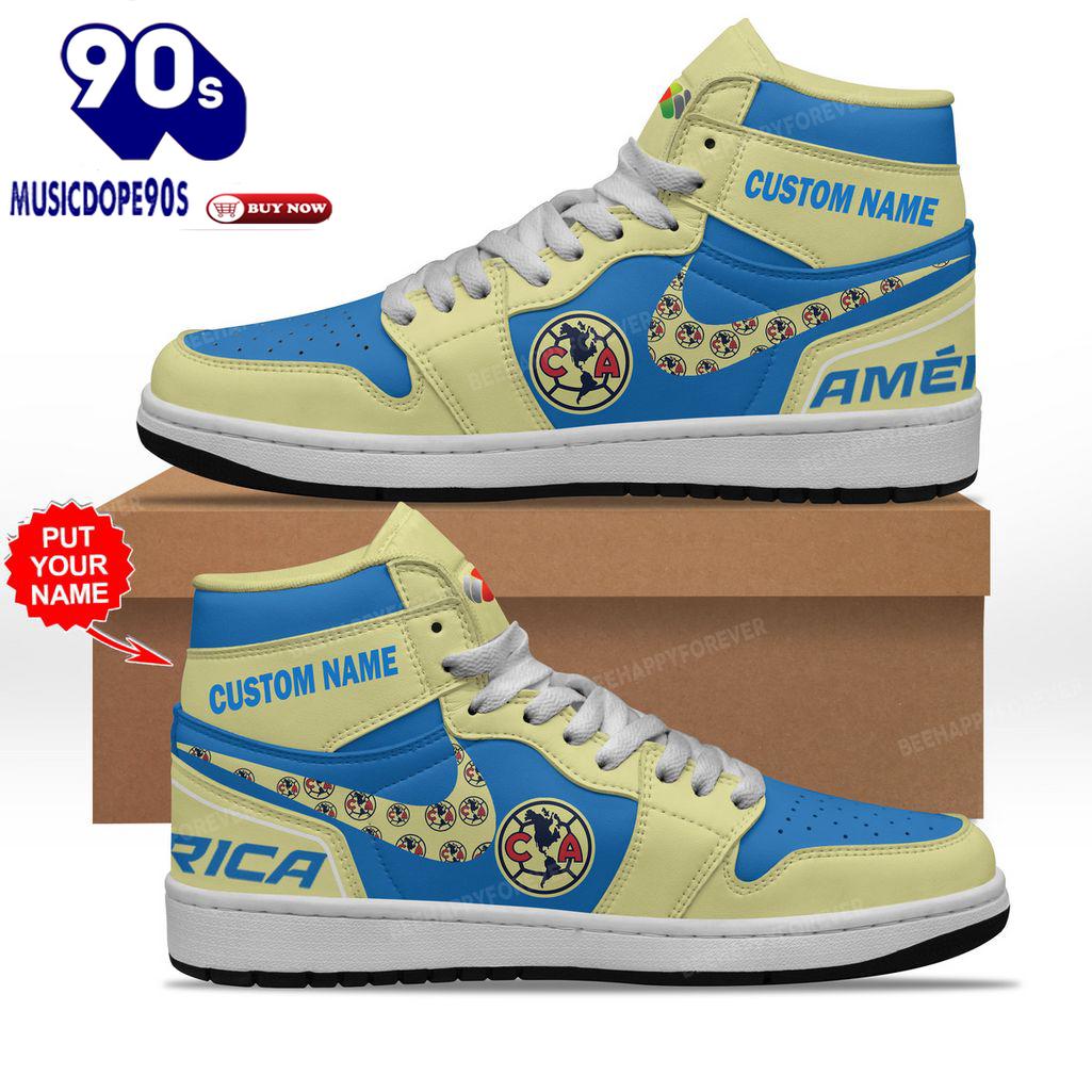 Personalized Club America Nike Logo Yellow Blue Design Air Jordan 1 High Top