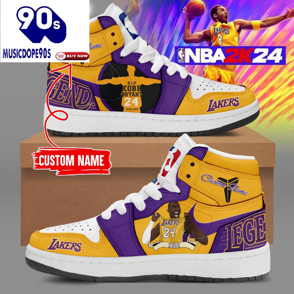 Personalized Kobe Bryant Los Angeles Lakers NBA Nike Logo Design Air Jordan 1 High Top The Air Jordan 1 High is one of the most iconic sneakers in Nike’s history and a staple in sneaker culture. This shoe was first released in 1985 and was specifically designed for basketball legend Michael Jordan. Featuring a high-top design, premium leather materials, and the signature Nike “Swoosh” logo, the Air Jordan 1 High offers both optimal comfort and support for athletes. Additionally, it has become a global fashion symbol. Each Air Jordan 1 High iteration comes in unique color combinations and is often released in limited editions, making it a valuable collectible for sneaker enthusiasts.