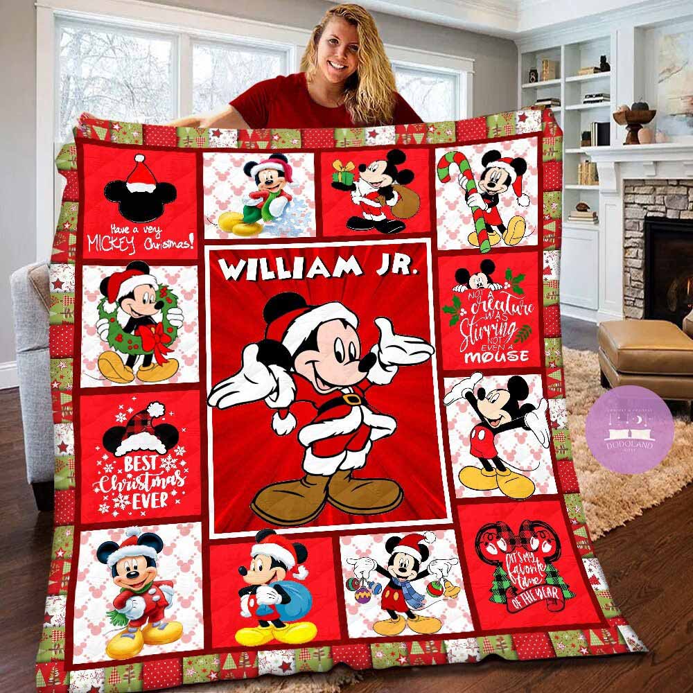 Personalized Mickey Mouse Christmas Quilt Blanket
