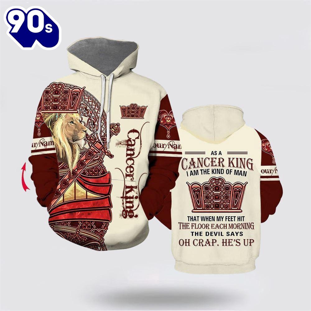 Personalized Name Lion Cancer King All Over Print Hoodie The 3D Shirt is a fashion statement that goes beyond the ordinary. Using advanced printing technology, it brings designs to life with depth and vividness. Crafted from high-quality materials, it offers comfort and durability. The three-dimensional graphics create a captivating effect that’s perfect for casual wear or making a bold statement. Whether you’re expressing your fandom or showcasing your unique taste, the 3D Shirt is a wearable work of art that sets you apart from the crowd.