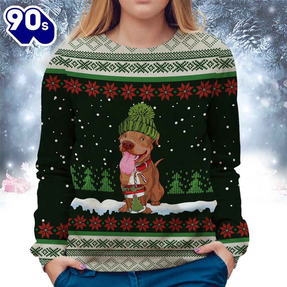 Product Details Pitbull With Snow And Christmas Ugly Sweater