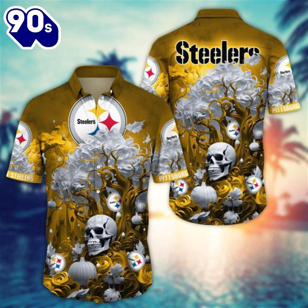 Pittsburgh Steelers Halloween Skull Pumpkin – NFL Hawaiian Shirt The Hawaiian Shirt is an iconic symbol of laid-back, tropical style. Crafted from lightweight, breathable fabrics, it offers a comfortable and relaxed fit, perfect for warm weather escapades. Its vibrant, exotic patterns evoke the spirit of the Hawaiian islands, radiating a sense of fun and adventure. With its button-up design and collared finish, it strikes the perfect balance between casual and smart-casual attire. Whether you’re strolling along the beach or attending a summer soirée, the Hawaiian Shirt exudes a carefree charm that’s synonymous with leisure and relaxation. Embrace the spirit of aloha and infuse a touch of paradise into your wardrobe with this classic and timeless piece of attire.
