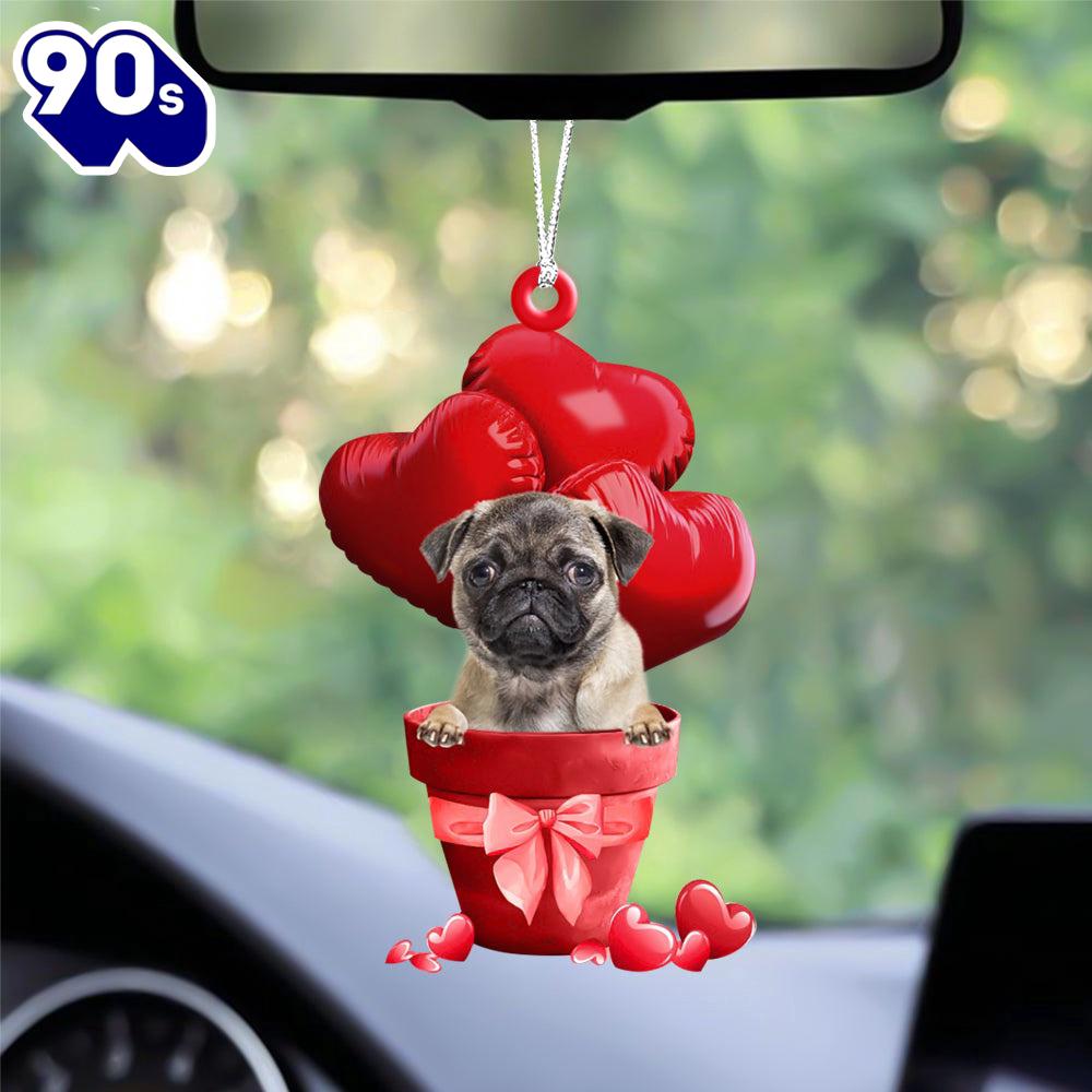 Product details: Pug Red Heart Balloon Ornament, Gift For Christmas