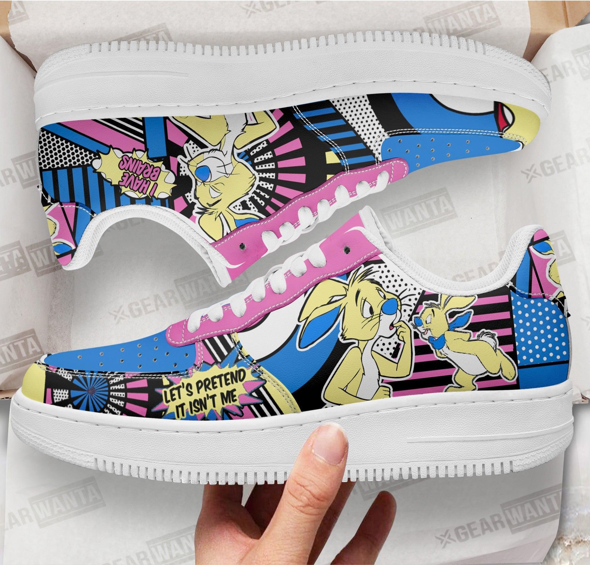 Rabbit Winnie The Pooh Air Sneakers Custom Comic Shoes Air Force 1 shoes are iconic sneakers that blend basketball heritage with streetwear style. Named after the aircraft that carries the President of the United States, these shoes feature a classic silhouette with a padded collar for comfort and a durable leather upper. The Air cushioning technology in the sole provides exceptional support, making them not only stylish but also practical for everyday wear. Over the years, Air Force 1s have transcended their athletic origins, becoming a cultural symbol in music, fashion, and art, often customized in various colors and designs to reflect individual style. Their timeless appeal and versatility ensure they remain a staple in sneaker culture.