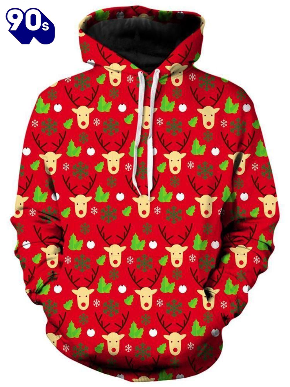 Product details: Reindeer Turn Up Red Christmas Hoodie All Over Print , Pet Christmas 3d Shirt