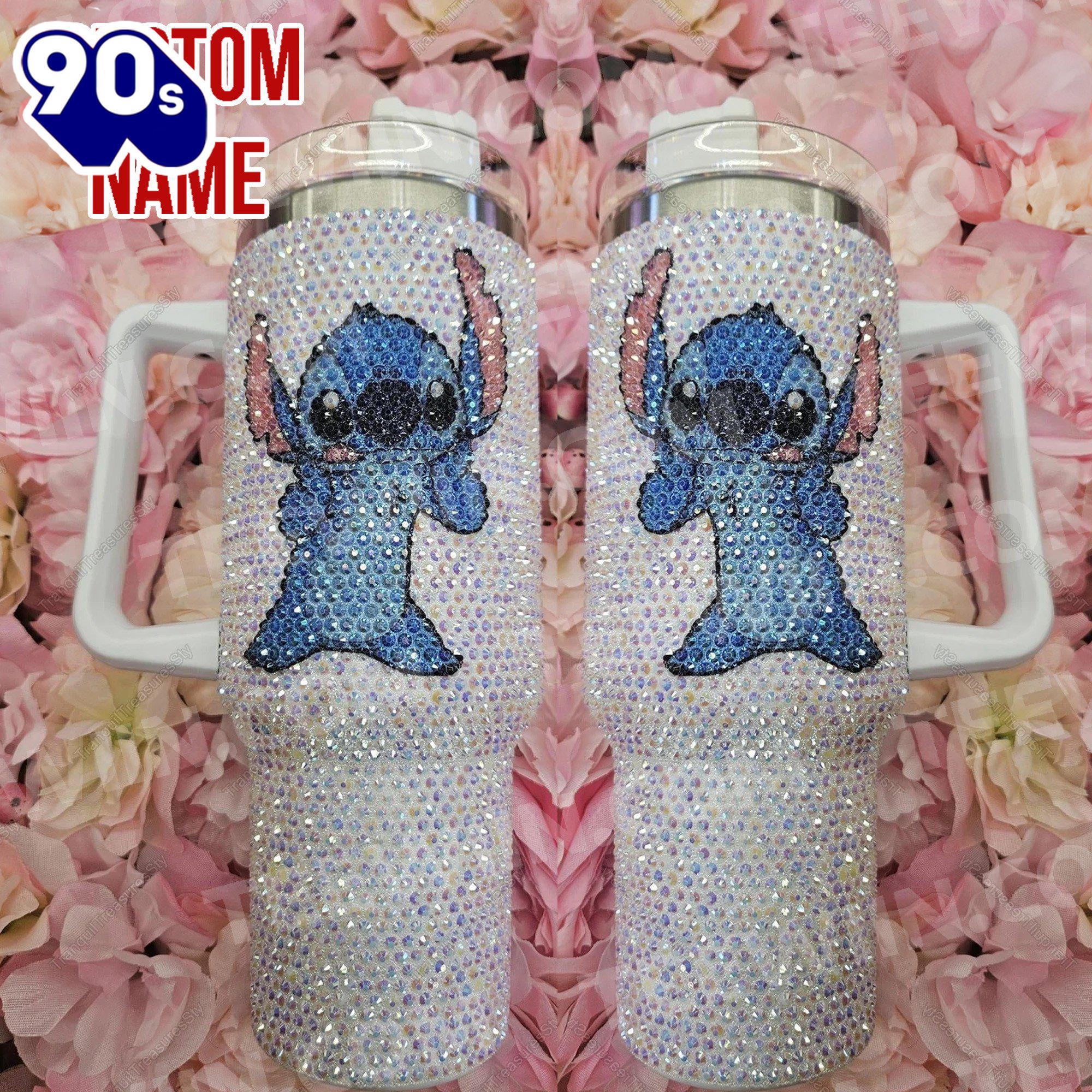 Product details: Rhinestone Bling Stitch Cartoon Custom Stanley Quencher 40oz Stainless Steel Tumbler With Handle