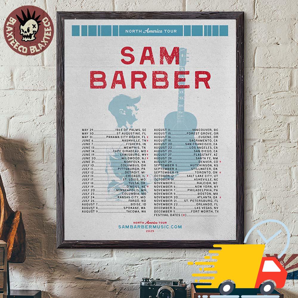 Sam Barber The 2025 North America Tour Cities Dates List Canvas