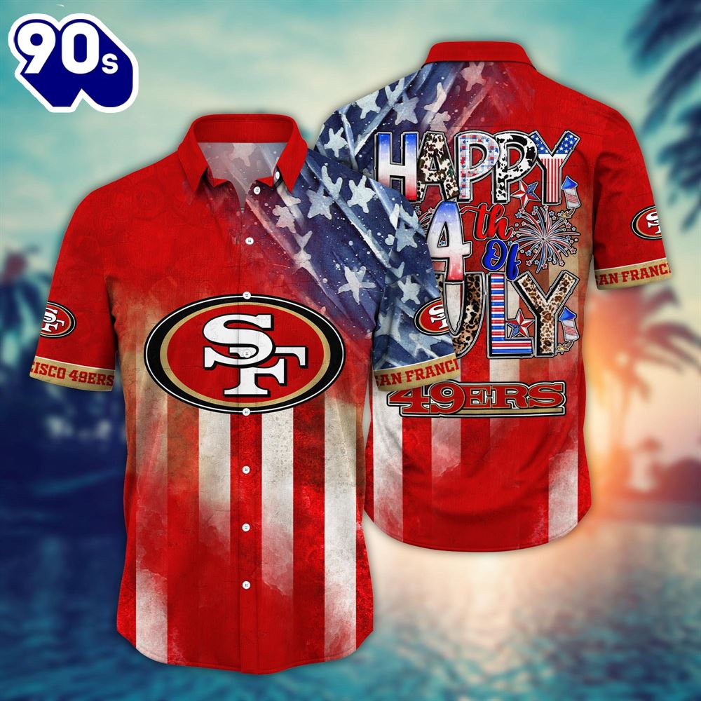 San Francisco 49ers NFL Happy 4th Of July Hawaiian Shirt The Hawaiian Shirt is an iconic symbol of laid-back, tropical style. Crafted from lightweight, breathable fabrics, it offers a comfortable and relaxed fit, perfect for warm weather escapades. Its vibrant, exotic patterns evoke the spirit of the Hawaiian islands, radiating a sense of fun and adventure. With its button-up design and collared finish, it strikes the perfect balance between casual and smart-casual attire. Whether you’re strolling along the beach or attending a summer soirée, the Hawaiian Shirt exudes a carefree charm that’s synonymous with leisure and relaxation. Embrace the spirit of aloha and infuse a touch of paradise into your wardrobe with this classic and timeless piece of attire.