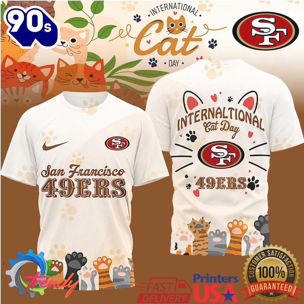 San Francisco 49ers Official NFL International Cat Day 3D Shirts The 3D Shirt is a fashion statement that goes beyond the ordinary. Using advanced printing technology, it brings designs to life with depth and vividness. Crafted from high-quality materials, it offers comfort and durability. The three-dimensional graphics create a captivating effect that’s perfect for casual wear or making a bold statement. Whether you’re expressing your fandom or showcasing your unique taste, the 3D Shirt is a wearable work of art that sets you apart from the crowd.